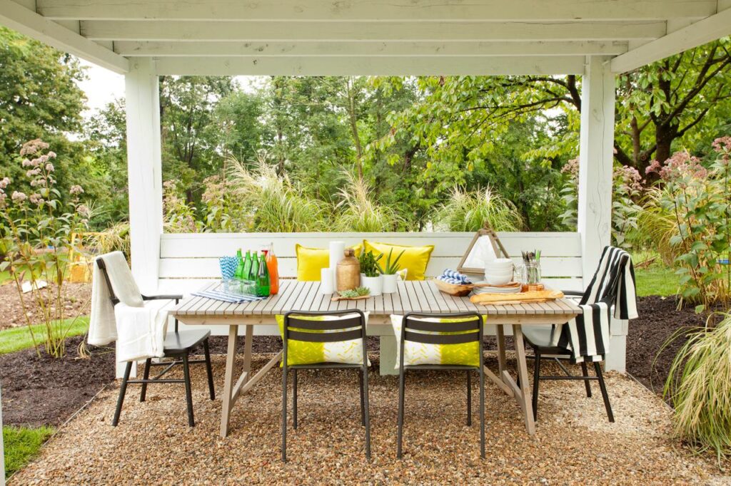Un espacio de patio es un gran lugar para ser astuto y creativo al pensar fuera de la caja y hacer algo único para usted y su familia.