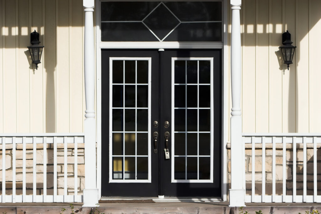 Si desea una apariencia de puerta de patio más clásica, considere optar por una puerta francesa. Estas son puertas con bisagras, generalmente de doble juego, que se abren y cierran. Por lo general, estas puertas están hechas de vidrio y están revestidas en rejillas.